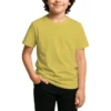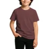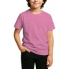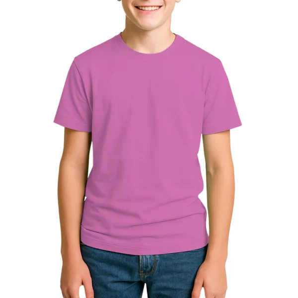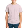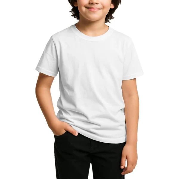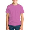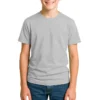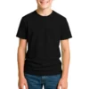 28 guage. 1×1 ribbed collar. Side seamed. 1.0” 2 needle sleeve and bottom hems. Tear-away booklet neck label. Self fabric shoulder to shoulder neck tape.